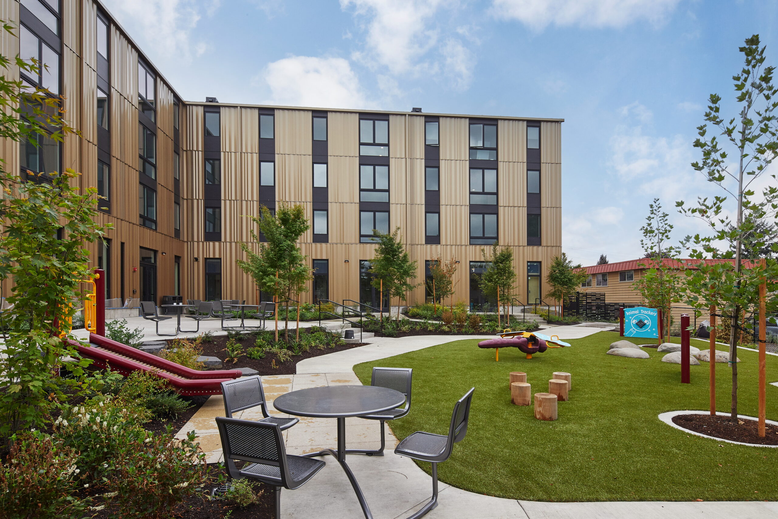 chaku kumtuks haws is a new affordable housing community located in Northeast Portland’s Cully-Concordia neighborhood at NE Killingsworth and 42nd Ave. It is a vibrant, family-friendly community hub for opportunity. The 4-story apartment community was developed by Home Forward and the Native American Youth and Family Center (NAYA) on land donated by Portland Community College (PCC). The community offers 84 studios, 1-, 2-, and 3-bedrooms.